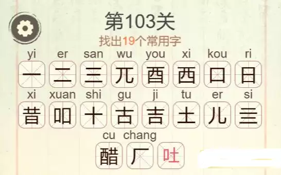 《聪明开局吧》第103关醋找出19个常用字攻略
