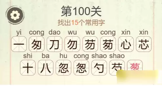 《聪明开局吧》第100关葱找出15个常用字攻略