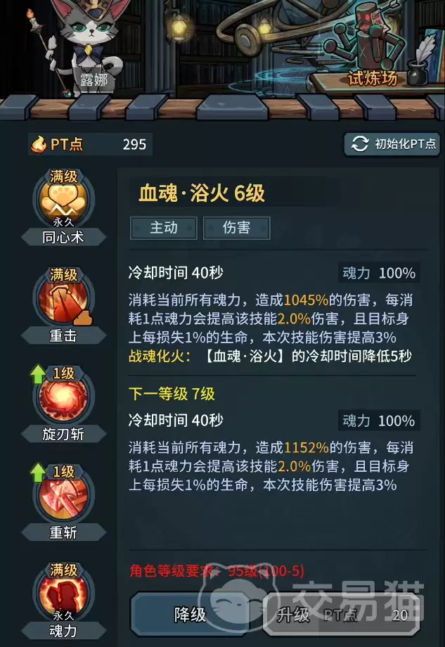 “血魂浴火”是整套连招的发动机。这个技能的机制很有意思,它以消耗自身一部分生命值为代价,换取一次强力的全体范围伤害,并且,损失的血量会按比例转化为攻击力加成。这里有个至关重要的细节:这个攻击增益效果,只要你不主动接受治疗,就会一直持续。所以,释放这个技能后,在效果期间内要尽量避免使用回血手段,这样才能将输出峰值稳定地维持下去,把每一分“血量投资”都转化为实实在在的伤害。