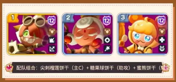 其次,土系流派走的是“以守为攻,厚积薄发”的路子。尖刺榴莲、糖果球与蜜熊饼干的组合,核心思路在于通过高速攻击叠加状态,最终打出爆炸性的范围伤害,同时依靠护盾实现攻防一体。这套阵容在面对怪物密集的副本时表现尤为出色。具体来说,尖刺榴莲是叠加伤害、制造爆发的关键;糖果球饼干则扮演了“破甲手”与“领域制造者”的角色,其生成的攻击区域即便切换角色后依然生效,能持续削弱敌人防御;而蜜熊饼干提供的坚实护盾,为全队营造了一个安全的输出环境,让队友可以放心倾泻火力。