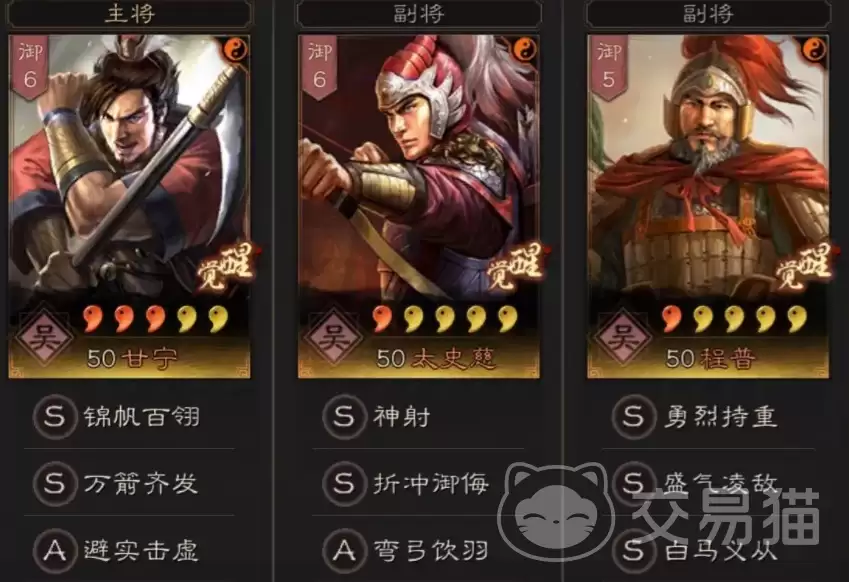这套阵容的运作逻辑,其实可以看作一个精密的“三层协同”体系。甘宁坐镇主将位,职责清晰——就是打爆发,担任队伍里的尖刀。太史慈作为副将,则专注于给对手“上debuff”,施加统率压制和控制效果。而程普的角色,则是前排的承伤核心与环境塑造者,为队友创造安全的输出空间。