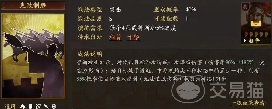程普的配置则可以更偏向功能性和团队辅助。适配“八门金锁阵”与“草船借箭”的组合:八门能提供稳定的减伤和先手增益,草船则补充了宝贵的群体续航能力。兵书采用“无战而胜”和“守势”,加点方案改为半统率半智力,这样能兼顾减伤的覆盖率和治疗量。这套配置在面对高智力的法师队,以及依赖指挥战法的主流阵容时,表现会更为出色。