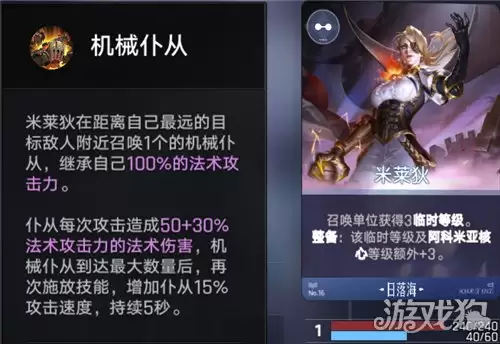 接下来,为亚连搭配米莱狄。这位日落海的召唤系英雄,能提升场上召唤物的临时等级,其触发的整备效果进一步拔高了我方核心的上限。当阵容整体战力不足时,应尽快觉醒米莱狄,其带来的战力补足是立竿见影的。他的技能会在距离最远的敌人附近召唤机械仆从,继承其100%的法术攻击力。