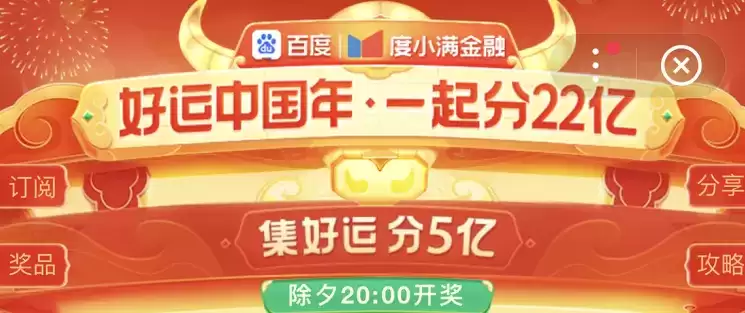 百度新年集卡2022合集是由百度打卡的最新的集卡的活动活动,用户只需免费参与就可以获得瓜分22亿的资格,从2022年1月22日开始,打开百度app就可以看到最新的活动入口,需要集齐好、运、中、国、年五张卡即,有多余的卡也可以分享给其它的人,免费参与进来进行瓜分哦!还可以通过做任务的形式来获得抽卡抽卡的次数,快速的集成,玩法简单。