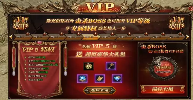 这里小编为大家推荐一些不花钱免费满级VIP的传奇手游,这些传奇游戏中大家上线就能直接获得满级永久VIP,而且还有非常多的游戏大礼包,免费升级,超丰厚的游戏奖励轻松领取,战力提升,等级提升,一起来玩吧!
