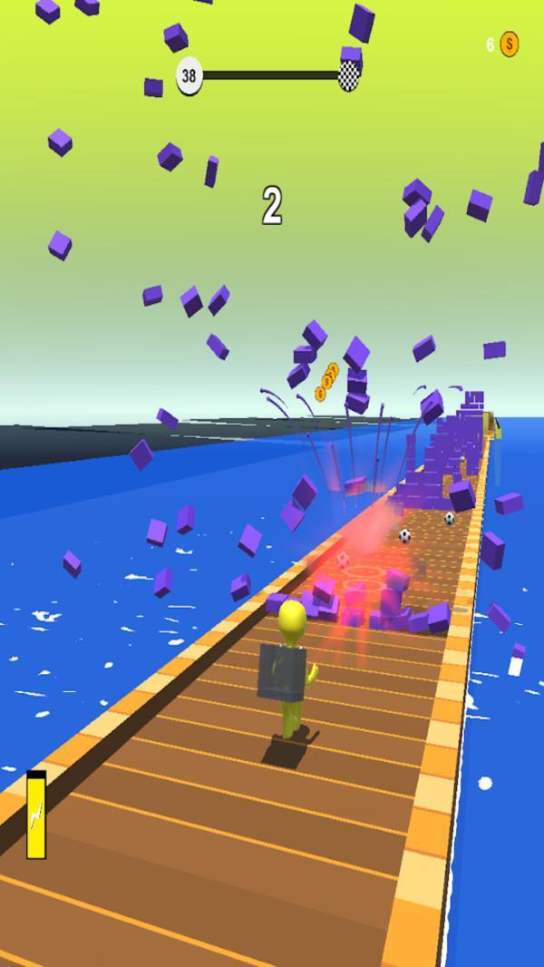 玩家在类似于传送带上进行闯关,利用你脚下的球,让面对你的墙轰然倒下。